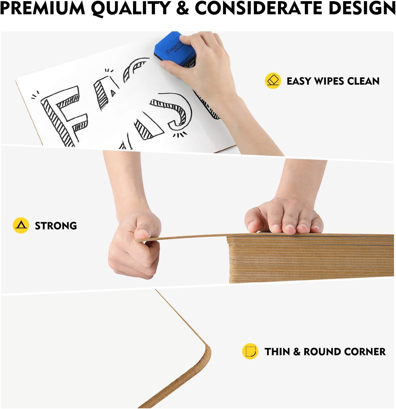 - 【QUALITY & SAFETY MATERIALS】 Our dry erase boards are made of Sturdy hardboard, which is very durable. The mini white board dry erase and all accessories are non-toxic. The user-friendly rounded corner design can prevent your child injured when exerting creativity.
