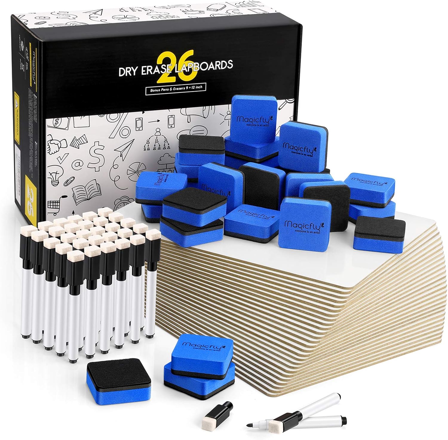 Magicfly Small White Boards, Dry Erase Board Pack of 26, Mini Whiteboards 9x12 Inches Double-Sided White Boards for Students Classroom Teachers School Supplies Office with 32 Pens and 26 Erasers