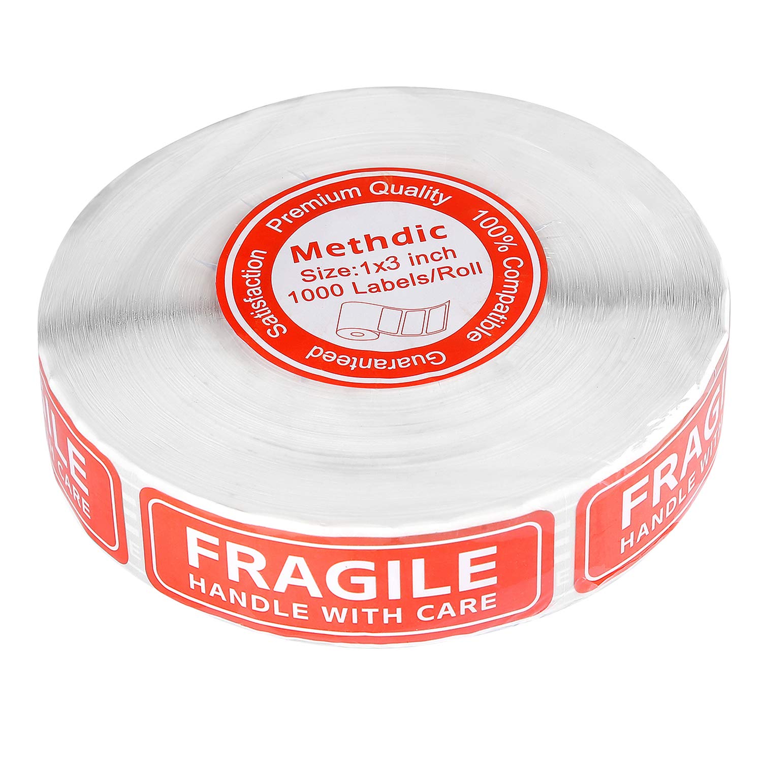 Methdic Fragile Stickers - 1"x 3" Strong Adhesive Fragile Labels 1 Roll/1000 Labels(Handle with Care,Fragile) Stickers for Shipping and Moving