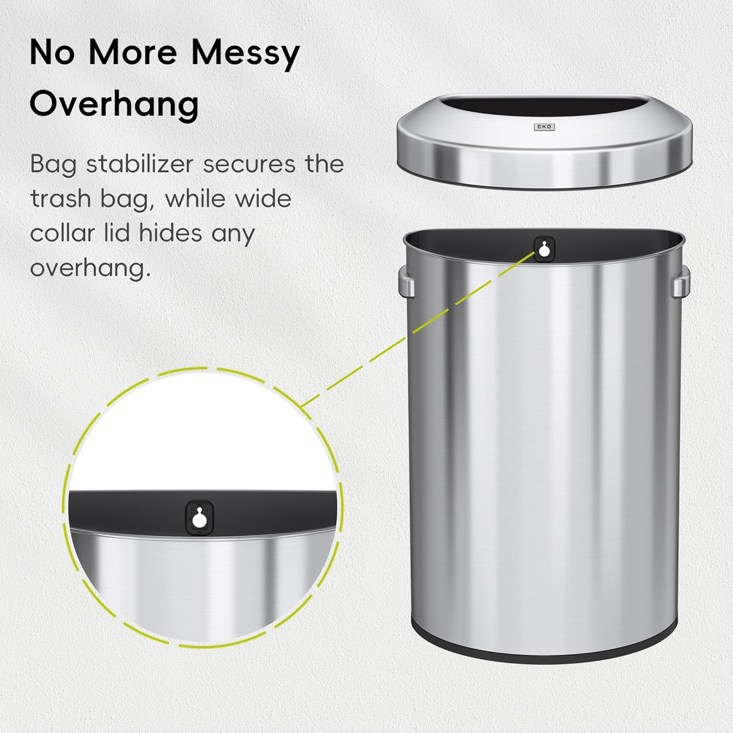 - Sleek Brushed Stainless Steel Finish - The fingerprint-resistant finish keeps the bin looking elegant and pristine with minimal maintenance.