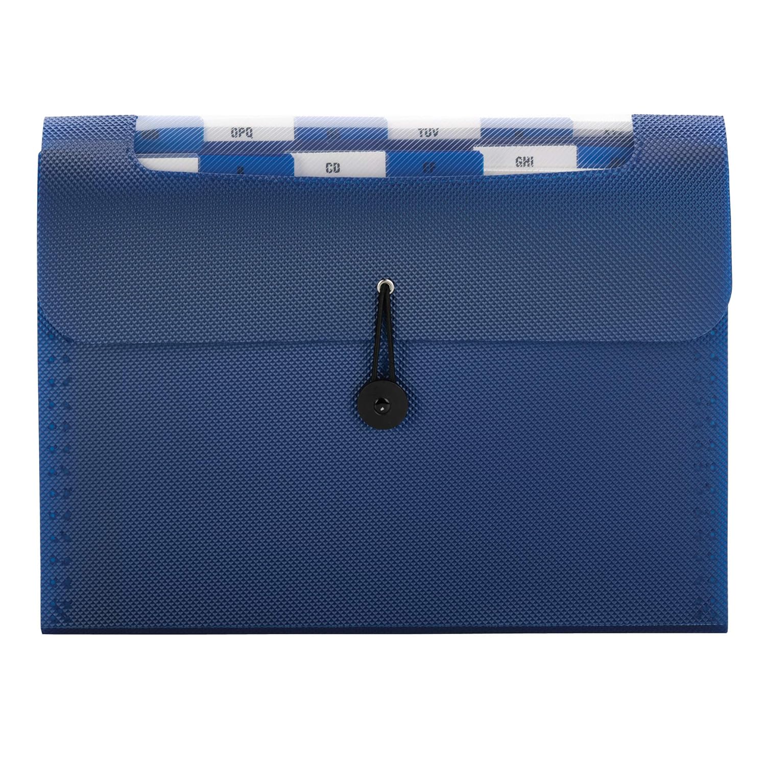 - Includes 2 letter size (13” W x 10” H) embossed poly organizers in navy blue with 12 pockets and indexed dividers to keep your documents sorted wherever work takes you