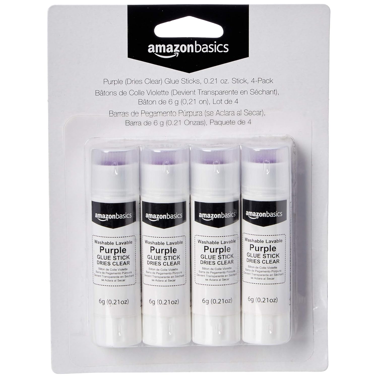 Amazon Basics Purple Washable School Glue Sticks, Dries Clear, 0.21 oz Stick, 4-Pack