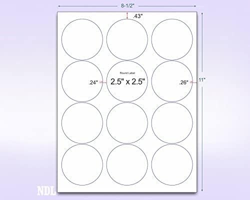 - Size : 2.5" Round - 12 Per Page | 1200 Labels