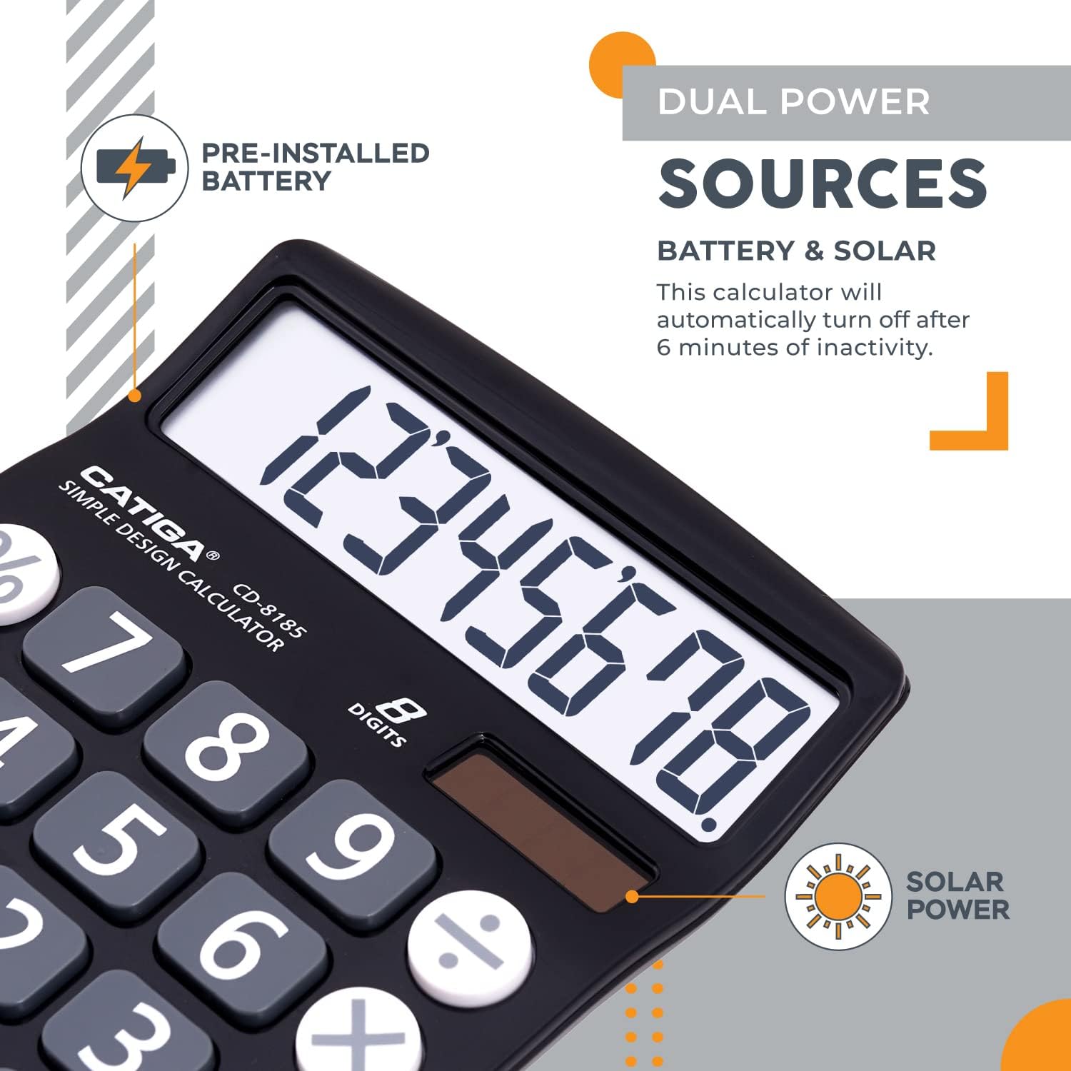 CATIGA Desktop Calculator 8 Digit with Solar Power and Easy to Read LCD Display, Big Buttons, for Home, Office, School, Class and Business, 4 Function Small Basic Calculators for Desk, CD-8185 Black
