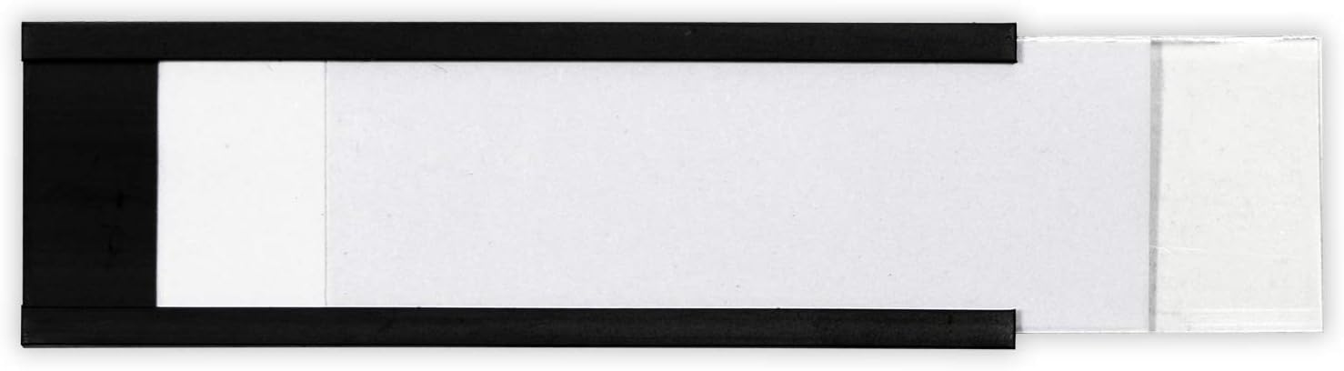 - DESIGN. The 100% magnetic material assures total adhesion in any application, while the unique C-channel design lets you slide the label easily.
