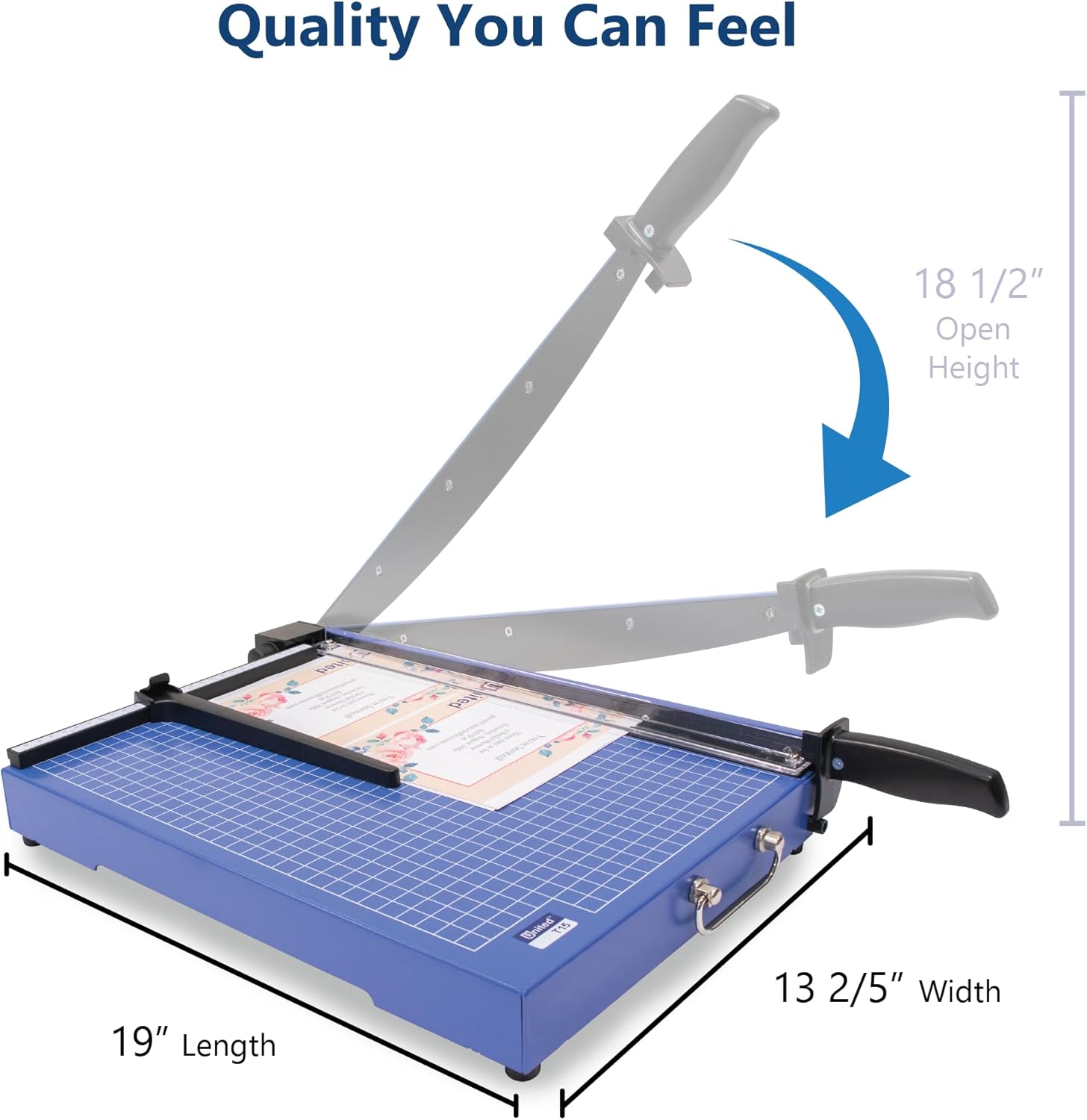 - PORTABLE AND VERSATILE: Lightweight with a sturdy carrying handle, this heavy duty paper cutter is perfect for offices, classrooms, photography, DIY crafts, scrapbooking and more.