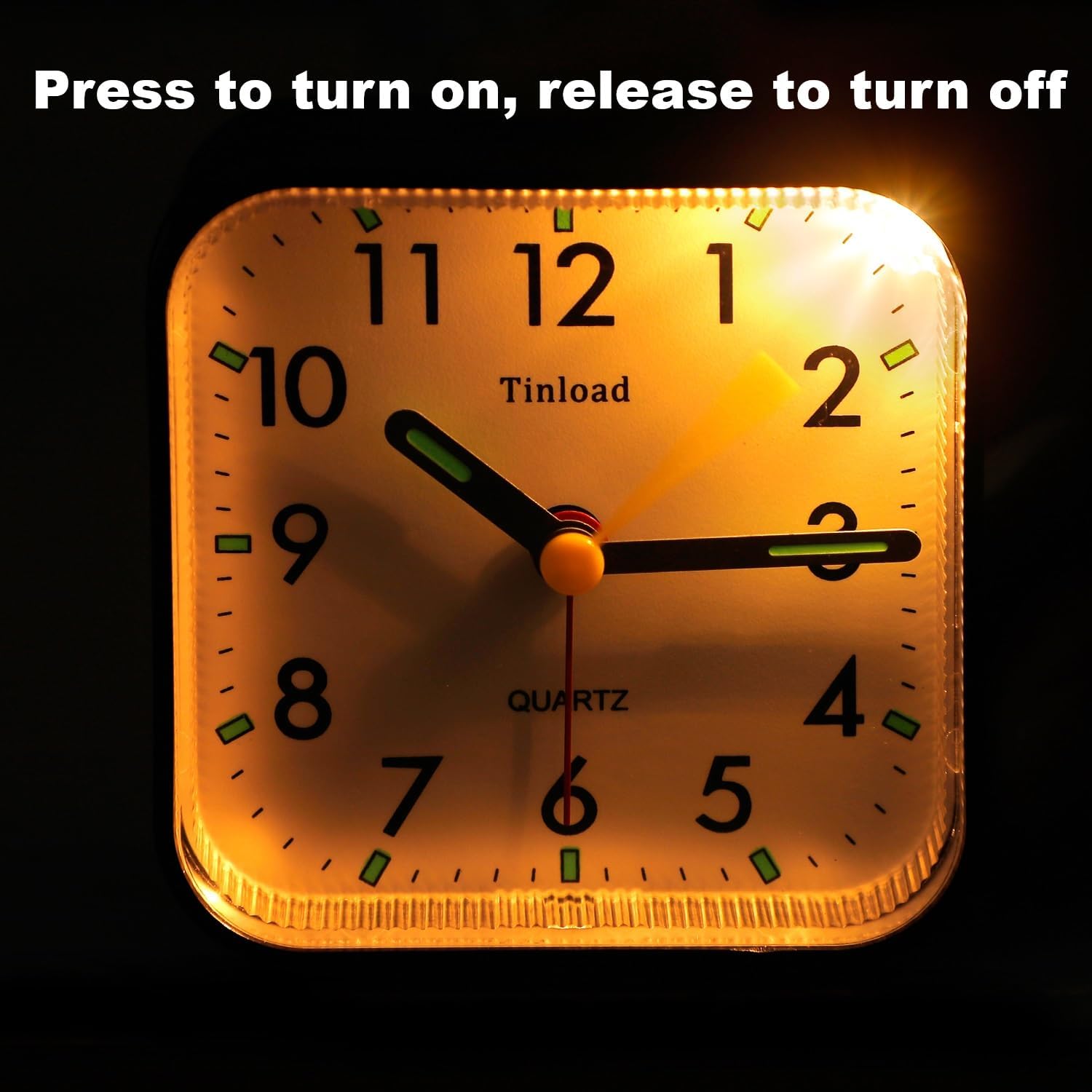 Small Battery Operated Analog Travel Alarm Clock Silent Non Ticking, Gentle Wake, Ascending Beep Sounds, Snooze,Lighted on Demand, Easy Set(Black)