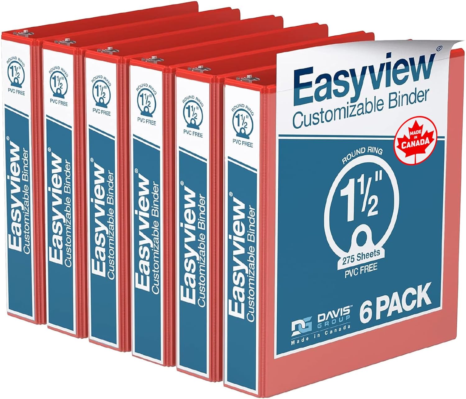 Easyview Premium 3-Ring Binders with Clear-View Covers and Round Rings, Binders for School or Office, 1.5 Inch, Pack of 6, Red