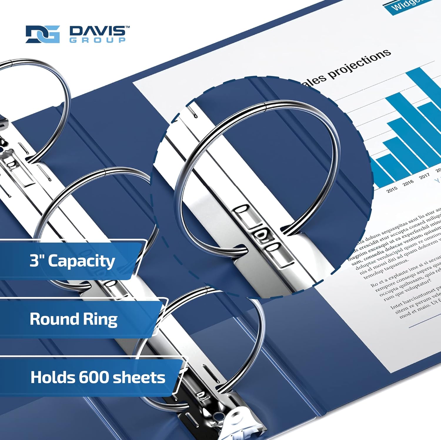 - ROUND-RING BINDERS: These big binders feature round rings and come in 1-inch, 1.5-inch, 2-inch, and 3-inch sizes. The 1-inch binder holds 200 sheets of paper, the 1.5-inch binder holds 275 sheets of paper, the 2-inch binder holds 400 sheets of paper, and the 3-inch binder holds 600 sheets of paper.