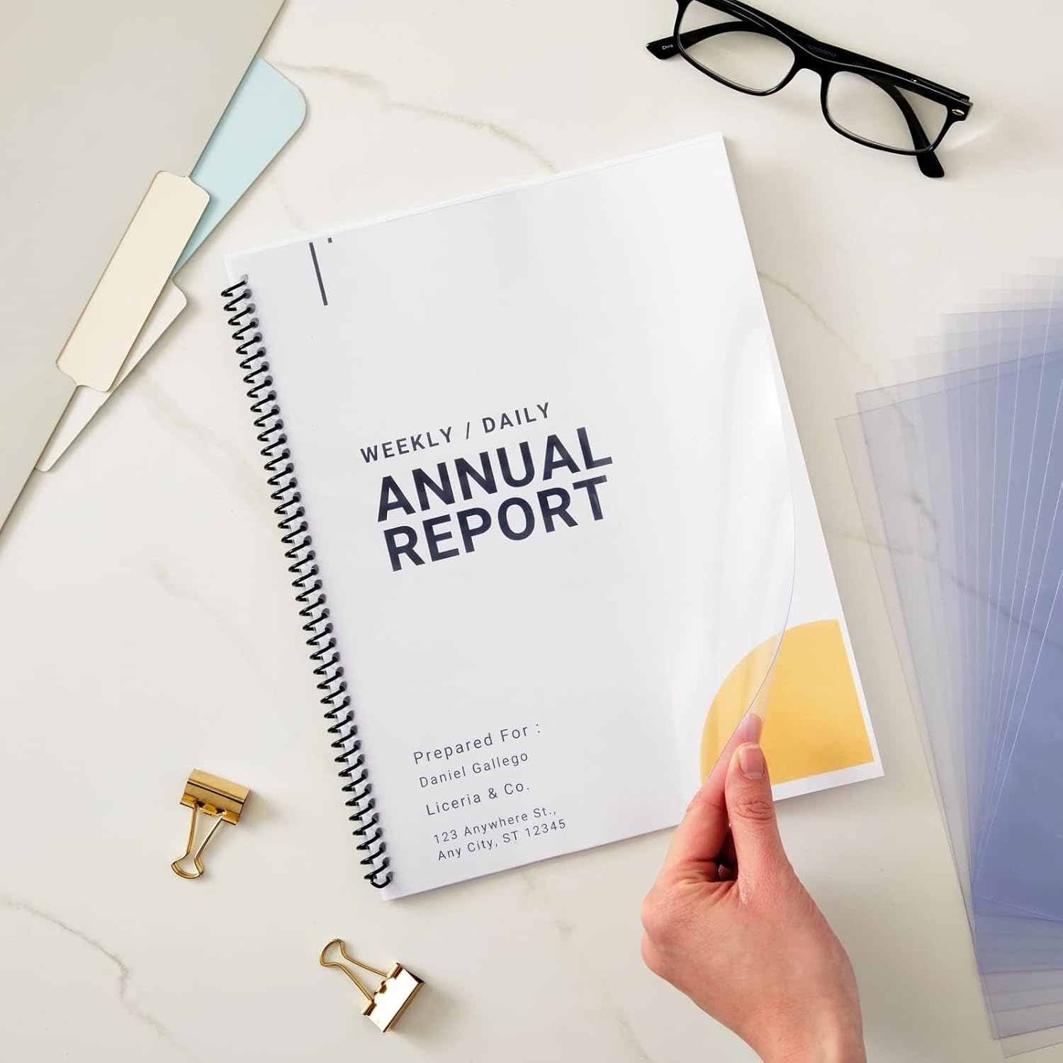 - Transparent Cover Sheets: Use this set of clear plastic report covers for covering reports and school assignments, documents, presentations, and business plans