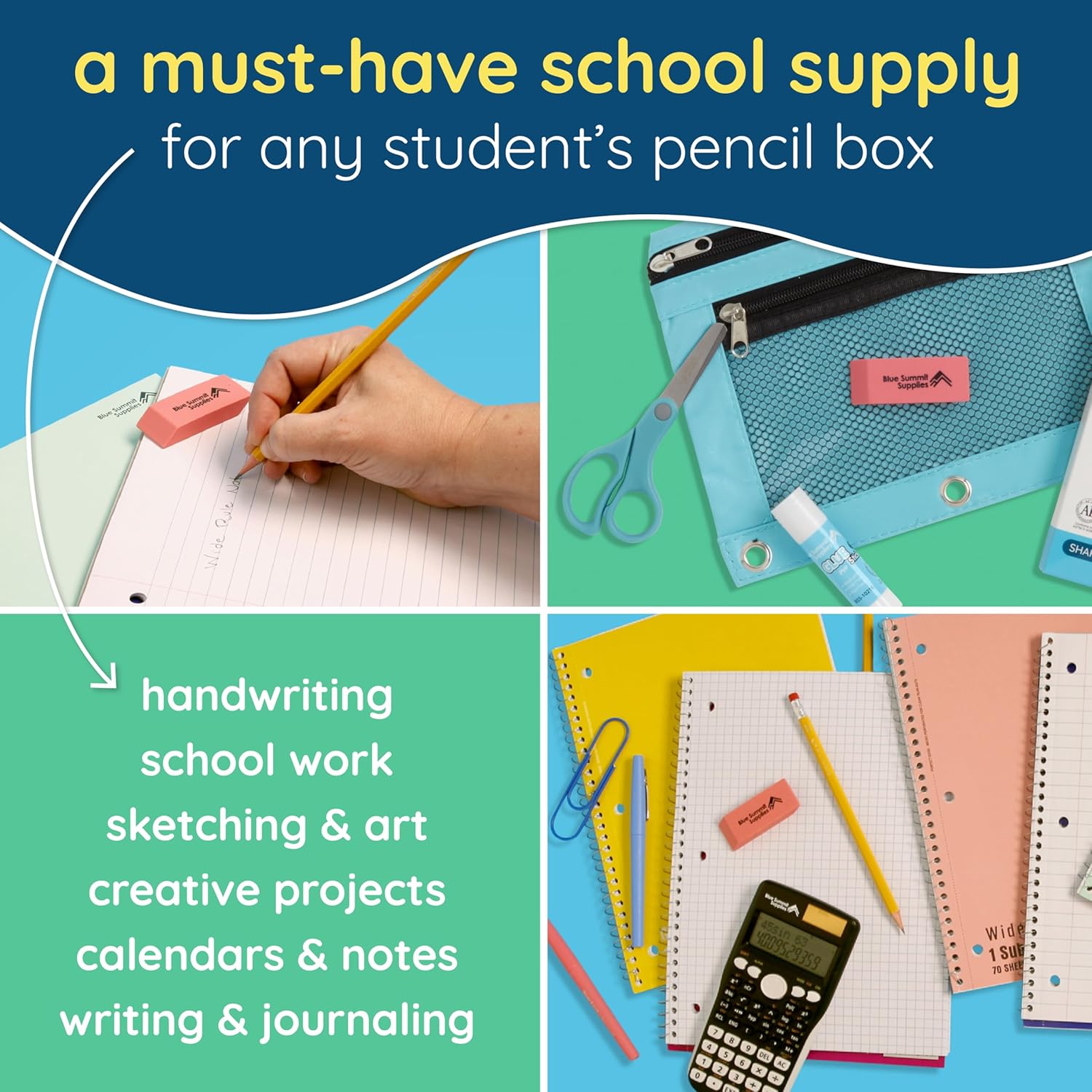- Never worry about smudging on your paper when you use our smudge-proof, premium quality pink erasers, which are a must-have for any student’s school supplies pack
