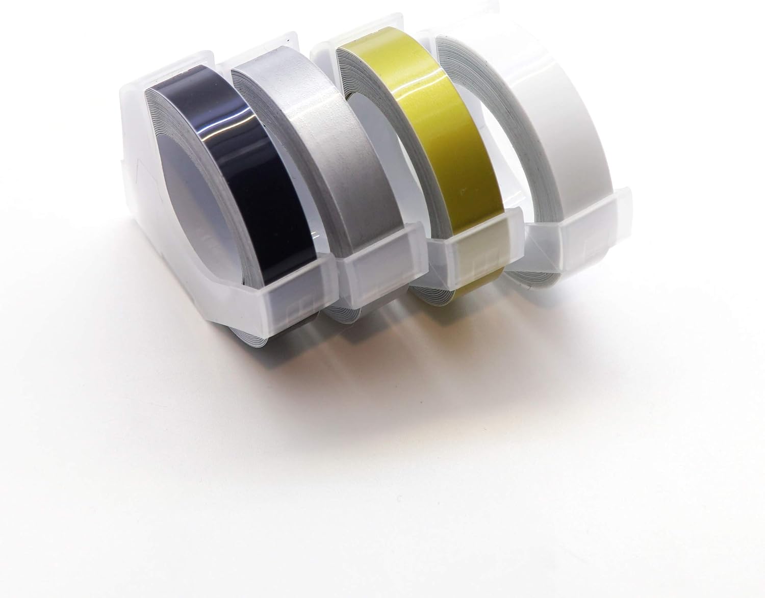 Motex Refill Tape for Embossing Label Maker, 4 Color Tapes, 3/8-Inch (Black, Transparent, Gold, Silver)