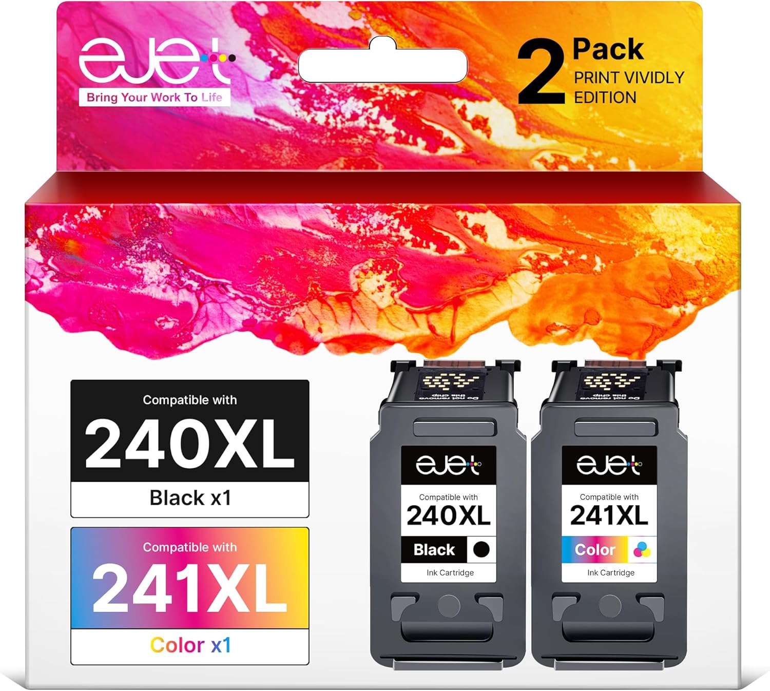 ejet PG-240XL/CL-241XL Ink Cartridge Replacement for Canon 240XL 241XL Combo Pack for Canon 240 241 High Capacity for Printer Pixma MG3620 TS5120 MG2120 MG3520 MX452 MX512 MX532 MX472 (2 Pack)
