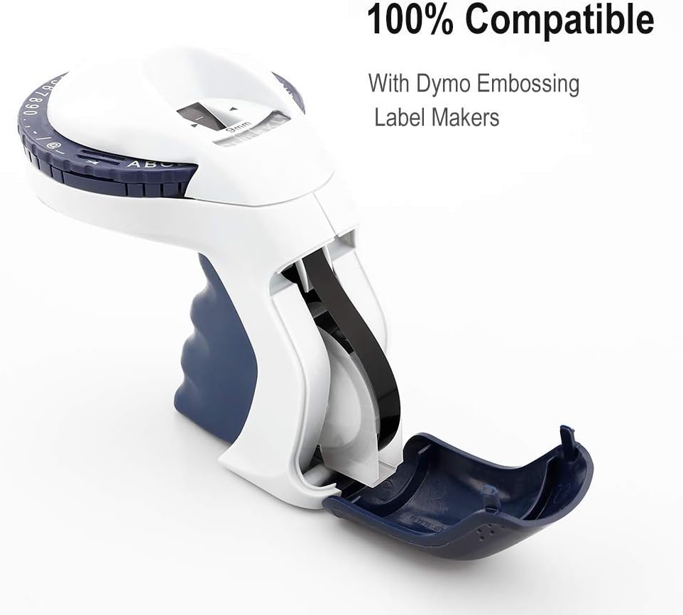 - Label maker black tape white letters replacement for DYMO embossing label tape feature raised lettering for a 3D effect