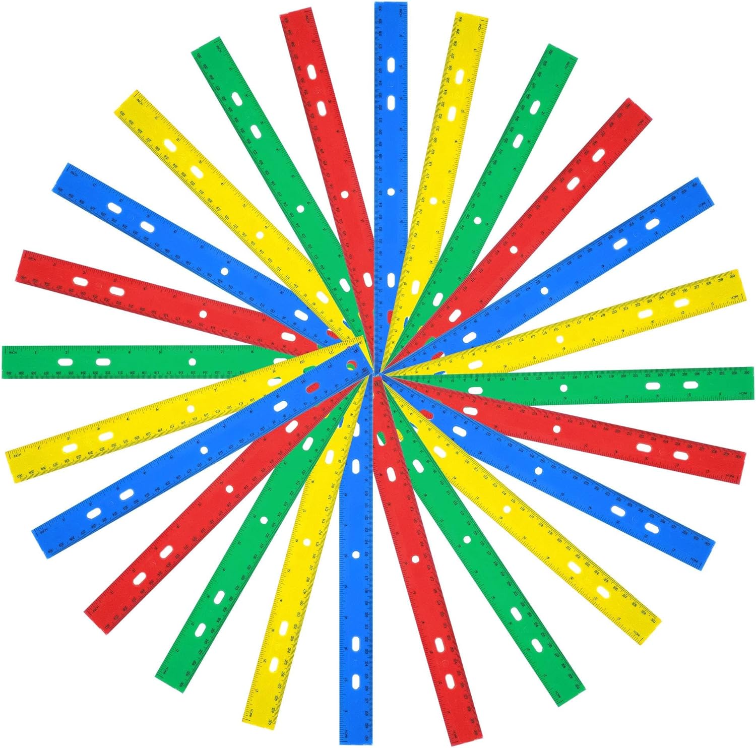 - PRACTICAL: Each value pack comes with 24 rulers in the following colors: 6 Red, 6 Blue, 6 Green, and 6 Yellow per pack. Rather than buying one a time, keep a plentiful supply on hand in case students break or lose them