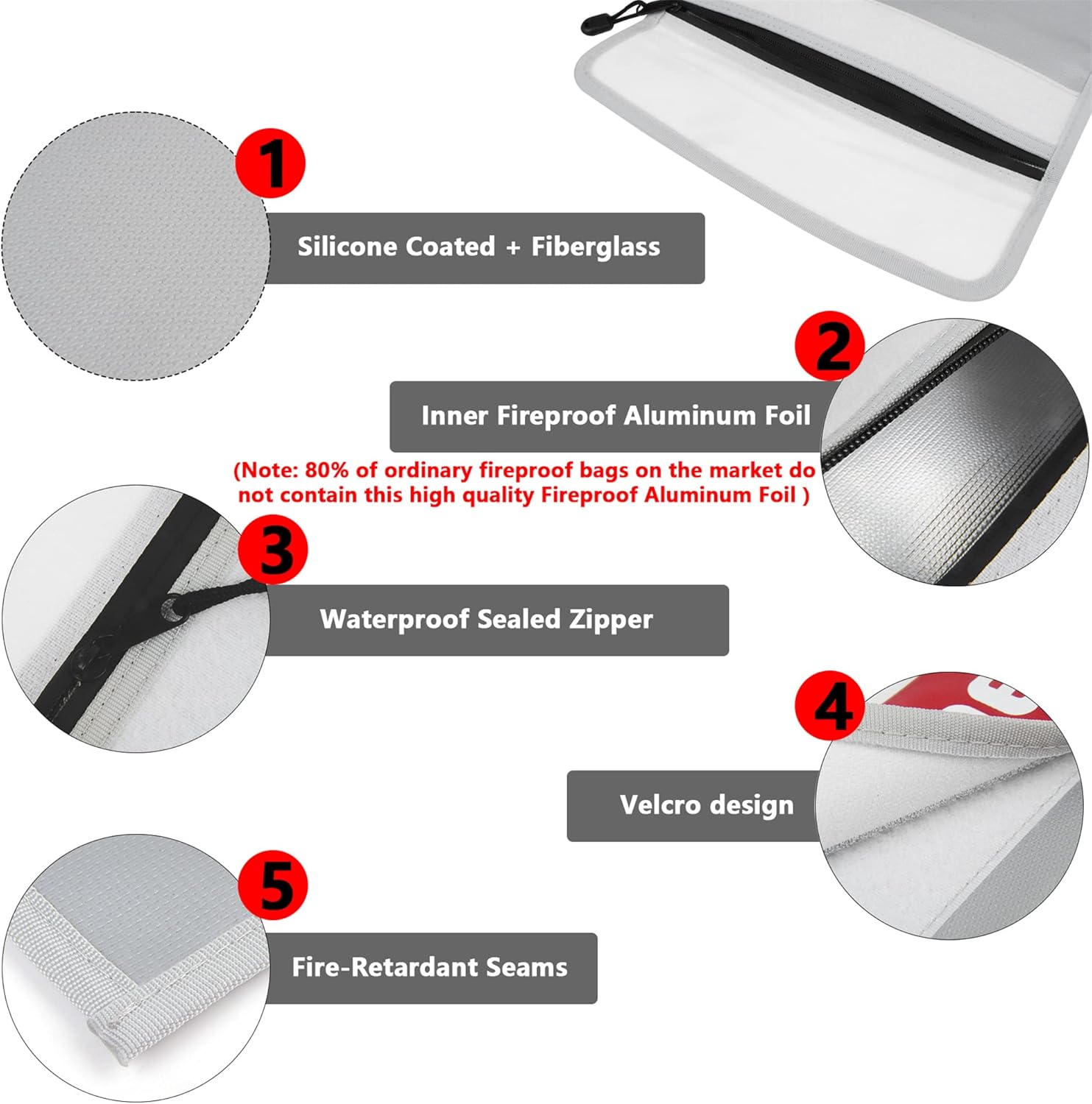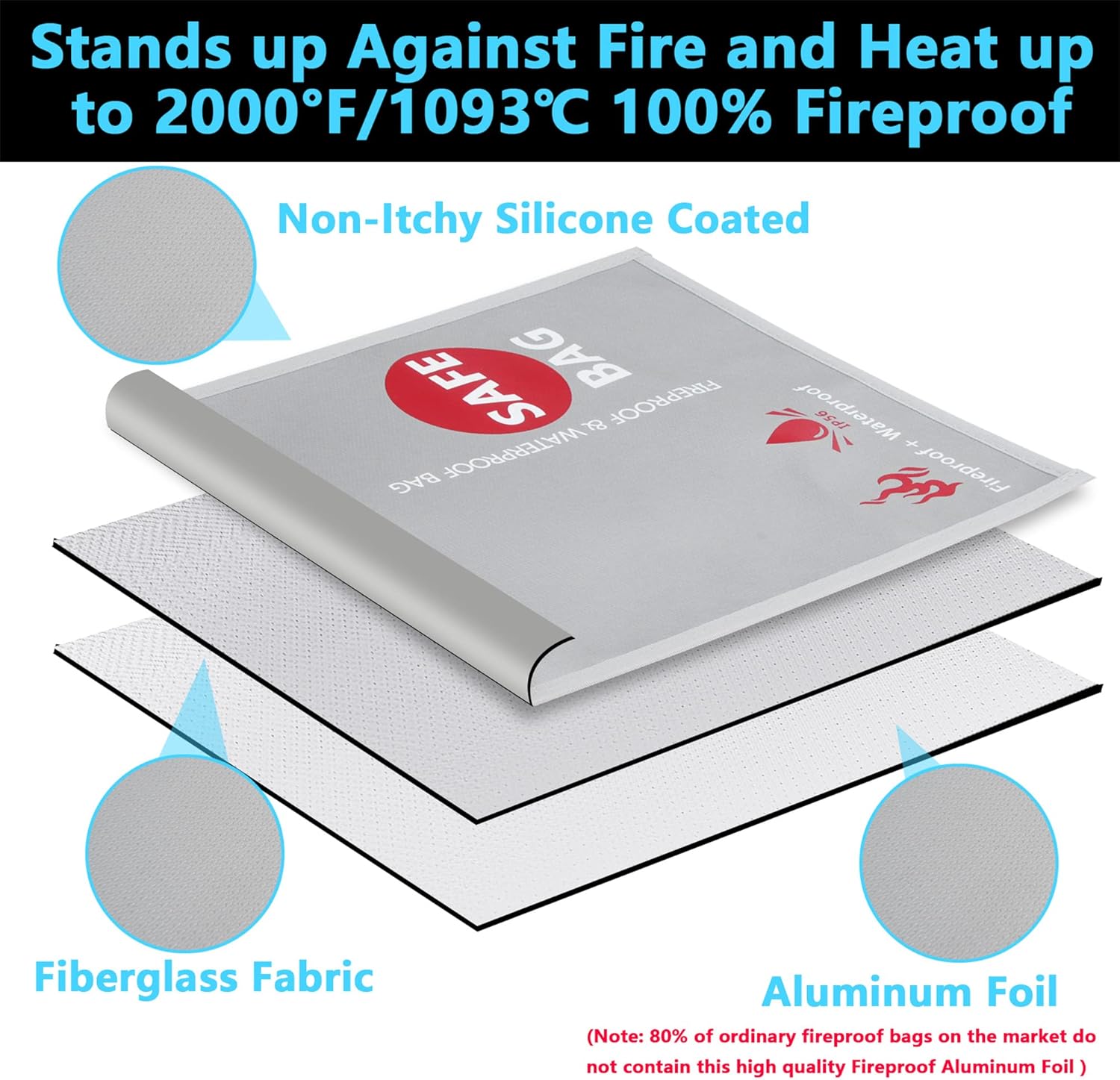 - Fireproof Design: Made of super high quality Silicone Coated Retardant-fiberglass exterior and aluminum foil interior, which can withstand temperatures as heat up to 2000 ℉.