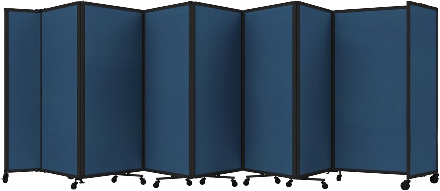 - THOUGHTFUL DESIGN: Made to roll around easily on wheels, this portable room separator also features locking casters to hold it in place. It comes with a trackable surface, sound-dampening fiberglass panels and a folding design for easy storage.