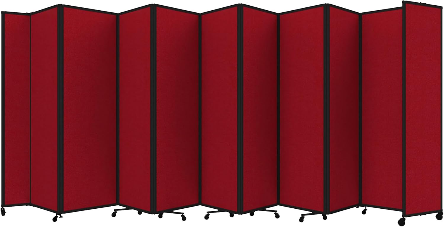 Versare Room Divider 360 Portable Wall Partition | Folding Panels | Large Freestanding Divider | Locking Wheels | Temporary Room Separator | 25' x 7'6'', Red
