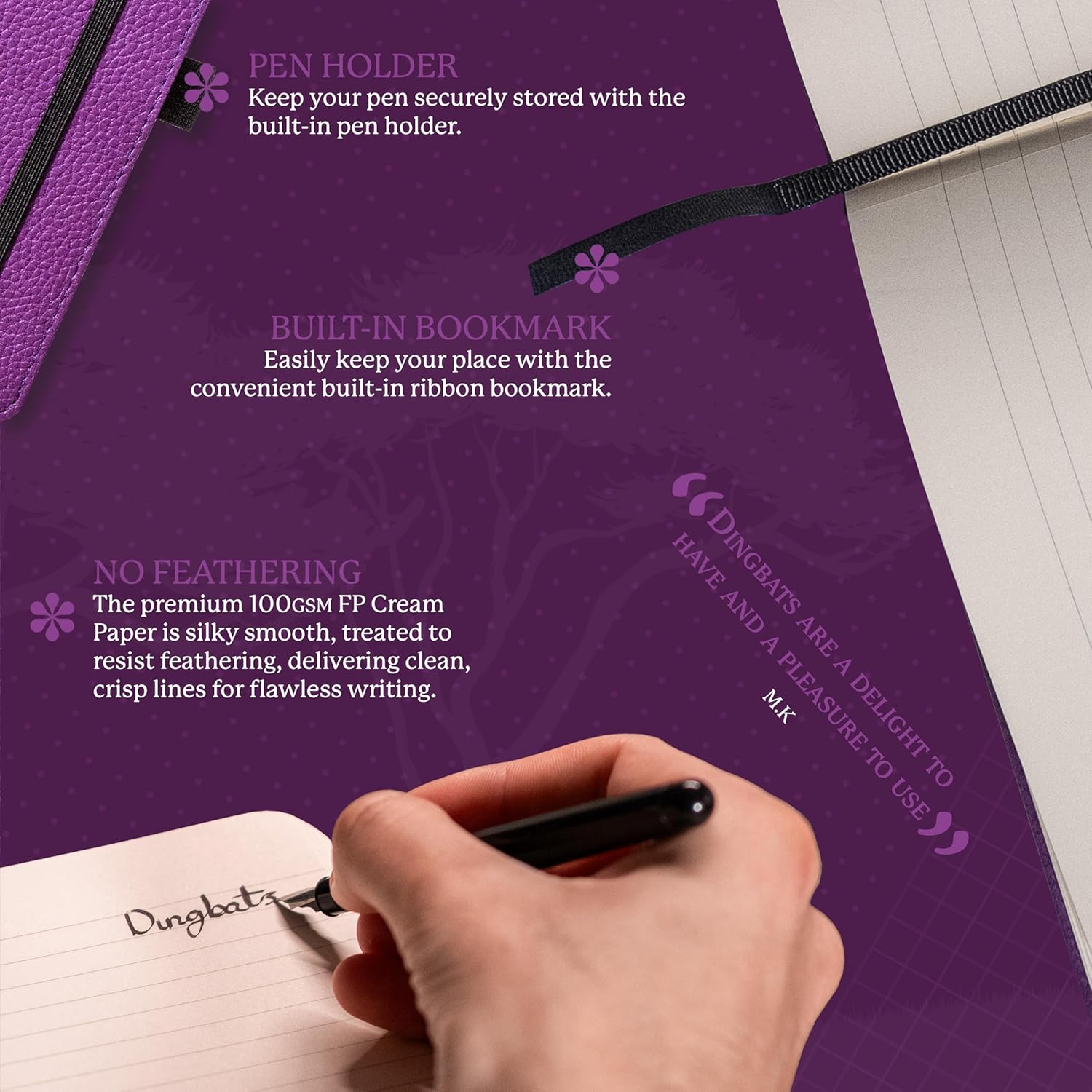 - A5 NOTEBOOK WITH LOTS O' FEATURES: Dingbats notebooks ooze quality - this hardcover bound leather notebook is crafted with PU vegan leather, micro-perforated cream 100gsm pages, an elastic closure and pen holder. It's complete with animal footprint end sheets, and an inner pocket for a little added detail - the perfect gifts for men and women, these travel essentials are a gift that keep on giving