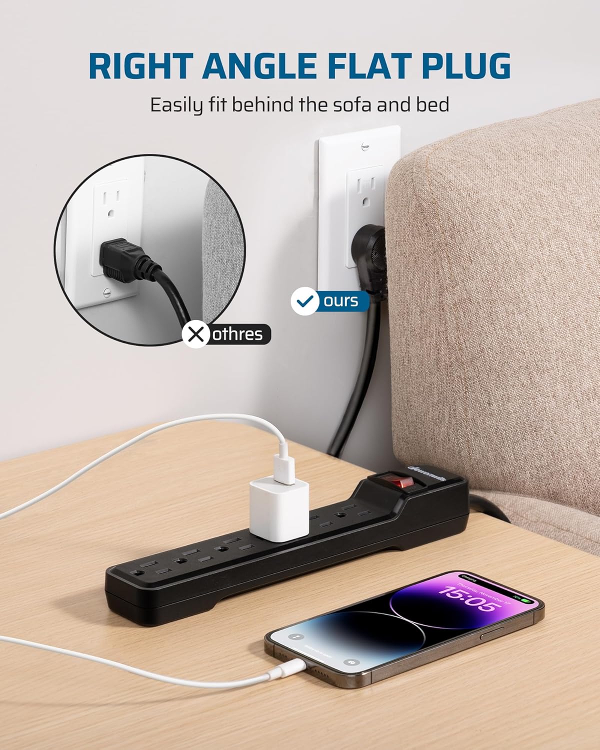 - 【 15 AMP Heavy Duty 】6 Grounded 3 prong AC outlets; 15A / 120V / 1800W high power; heavy duty power strip surge protector is perfect for entertainment centers, offices, and anywhere multiple devices need power