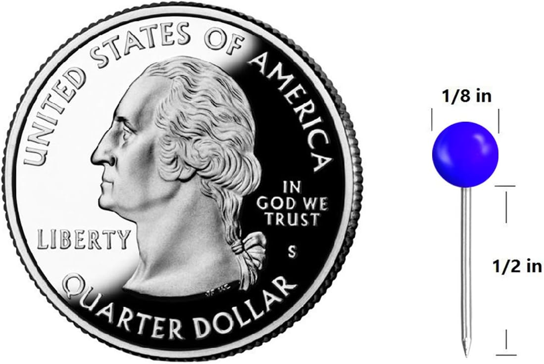 Map Tacks 1/8-Inch Assorted Color Beads Head Map Marking Push Pins,500-count (Blue)