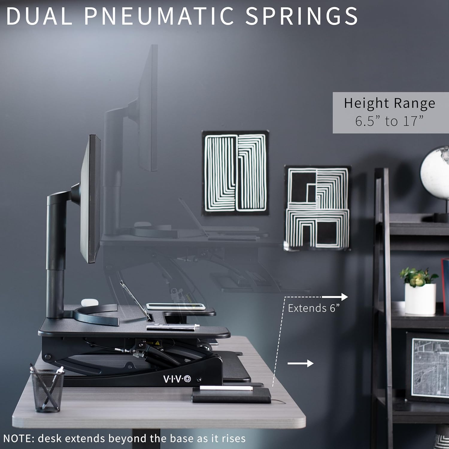 VIVO 32 inch Height Adjustable Stand Up Desk Converter, V Series, Quick Sit to Stand Tabletop Dual Monitor Riser Workstation, Black, DESK-V000VS