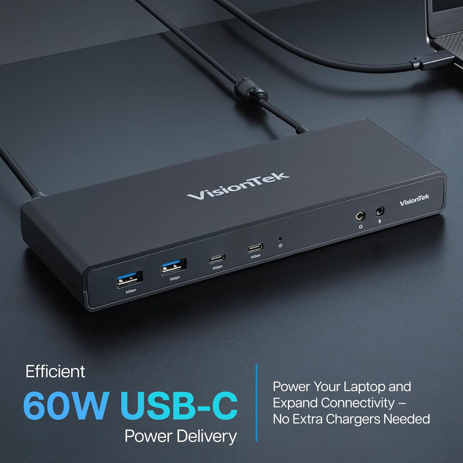 - Laptop Charging with USB-C Power Delivery (60W): Streamline your workflow with efficient 60W USB-C Power Delivery, allowing you to power or charge your laptop directly through the docking station.