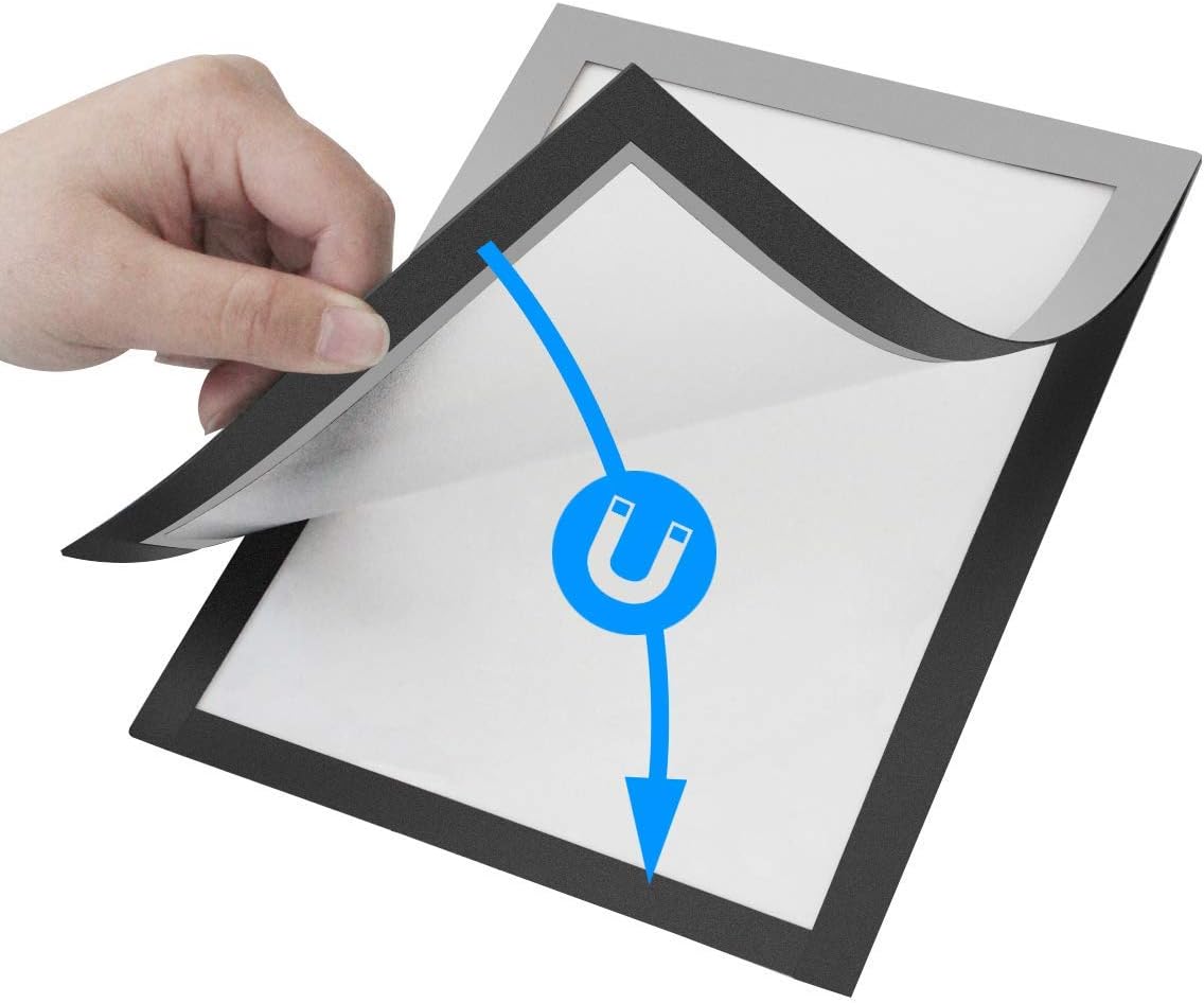 Document Sign Holder Pockets with Magnetic Back, Plastic Poster Picture Notice Display Frame for Fridge/Whiteboard/Chalkboard/Cabinet, 8.5 x 11.6 Inches, Silver, 12 Pcs