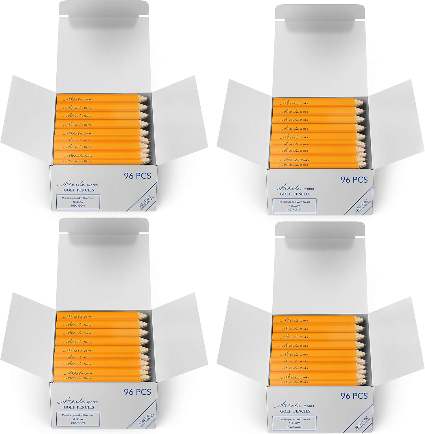 Mini Golf Pencils Without Erasers - 384 Count - Classic Pre-Sharpened #2 HB American Pew Pencils Standard Hex Shaped Bulk Pack