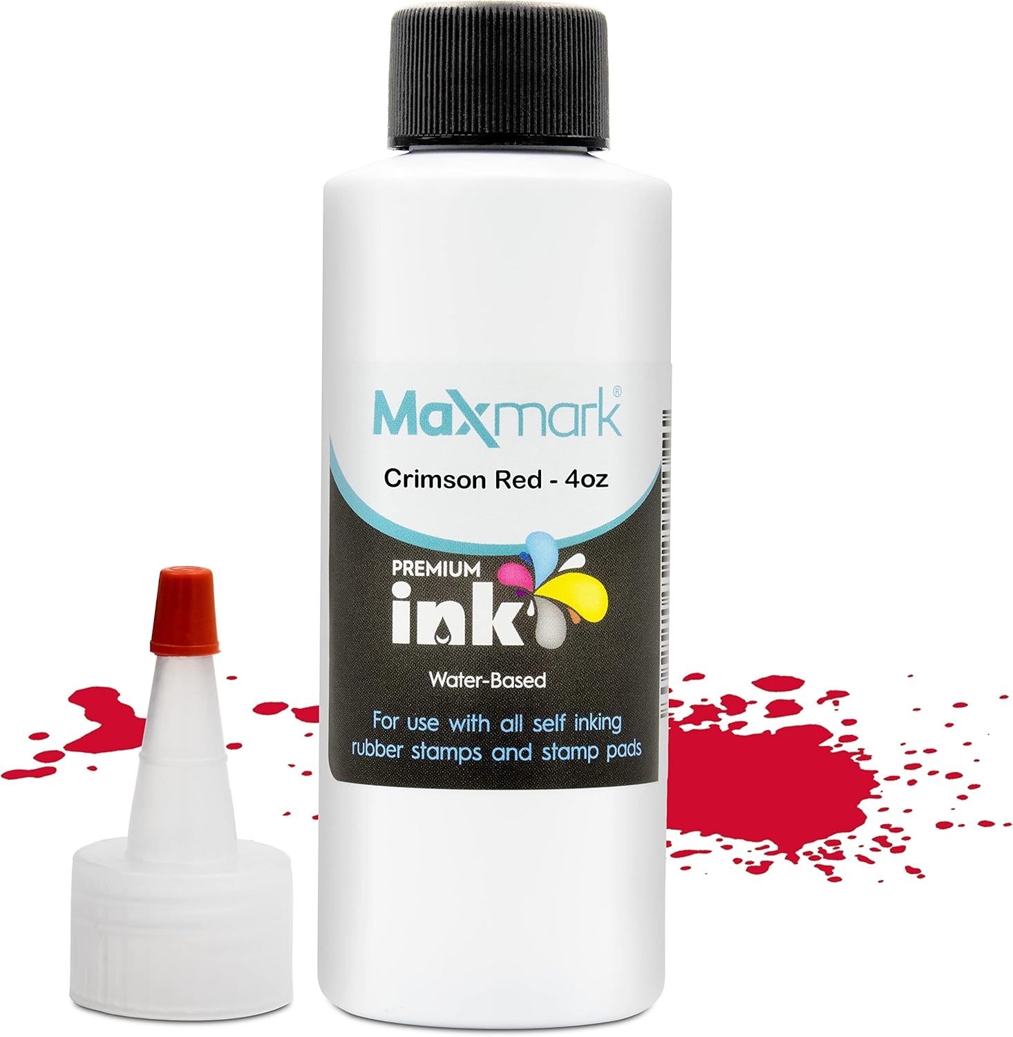 MaxMark Premium Refill Ink for self Inking Stamps and Stamp Pads, Crimson Red Color - 4 oz.