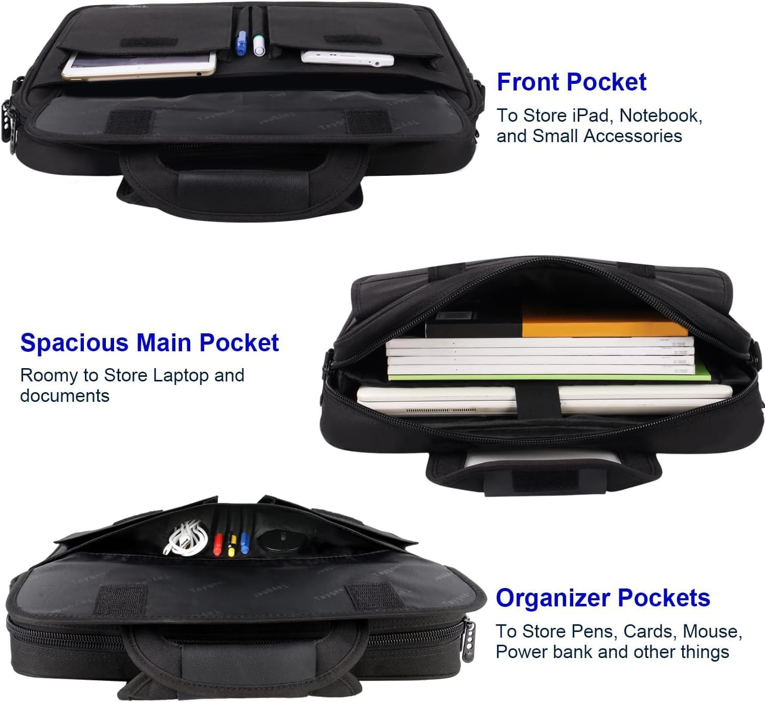 - Multi-Compartment Organizer: The women laptop briefcase includes external 2 pouches & 2 pen pouches and inside several pouches in front large pocket closure under flap over, storage holders, documents, binder, power cords, mouse; 1 main zipper Pocket with foam padded sleeve fits most 15 15. 6 inch Laptop notebooks. PLEASE NOTE: Please check your device dimensions against our laptop Bag's internal dimensions to ensure perfect fit