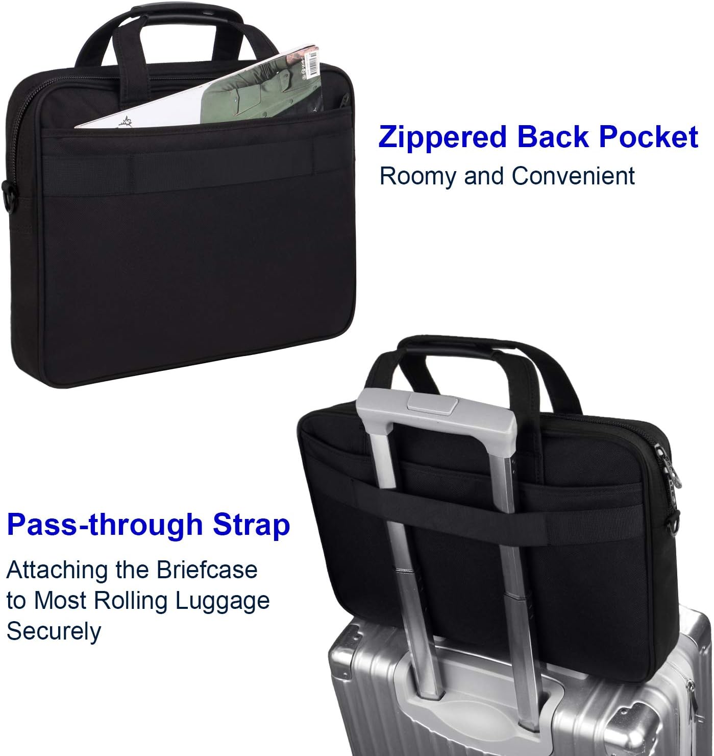 - EASY CARRYING ON: 17 inch laptop bag comes with a flat pass-through strap along the back, which allows the case to securely slip over the handle of any rolling luggage for hands-free transport. This designed laptop bag offering added convenience when business travel. Great valentine's gifts for him or her