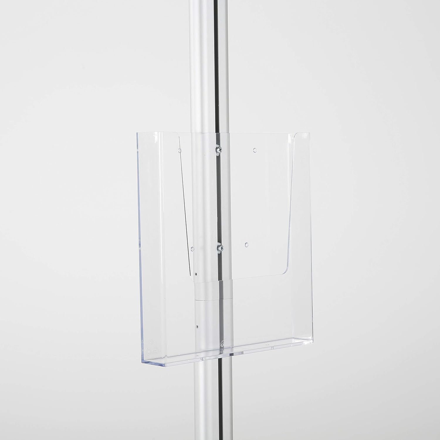 - INFORMATIVE POST: This freestanding signpost helps you reach your customers and workers practically and elegantly. The aluminum body, frame 1x(8.5x11 inch) and a clear pocket 1x(8.5x11 inch) give this post a serious and elegant look. The front-loading mechanism lets you change the media easily.