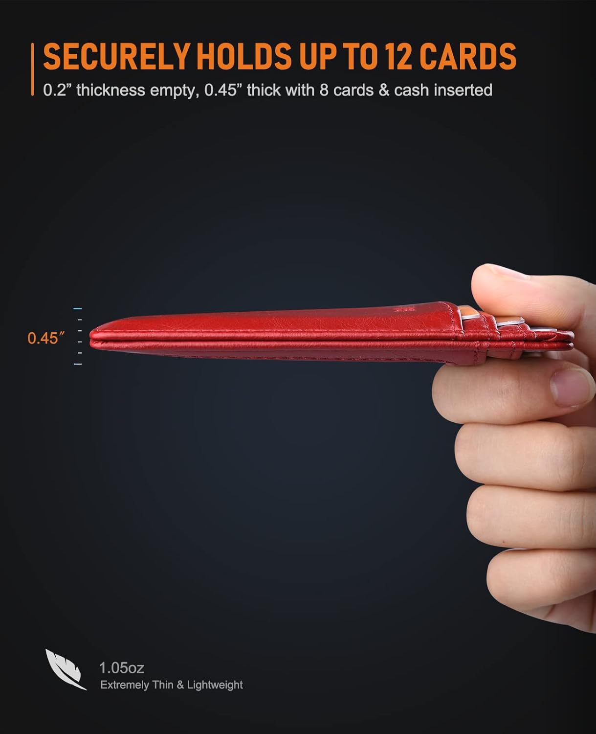 Buffway Slim Minimalist Front Pocket RFID Blocking Leather Wallets for Men and Women - Alaska Cherry