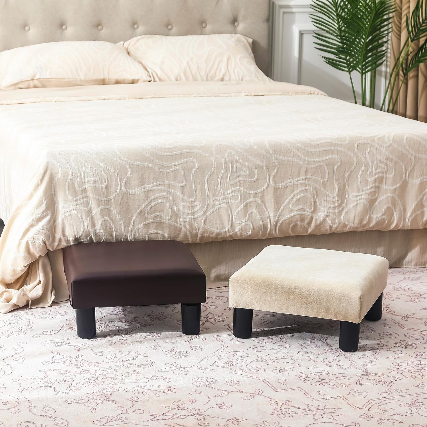 - SMALL OTTOMAN DIMENSIONS: 15.7” Length x 15.7” Width x 8” Height ; Featuring small size and light weight, our ottoman is convenient for you to move and transport to play its multifunctional role. This footrest small ottoman stool is compact enough to keep near your couch, under chair or even under a desk.