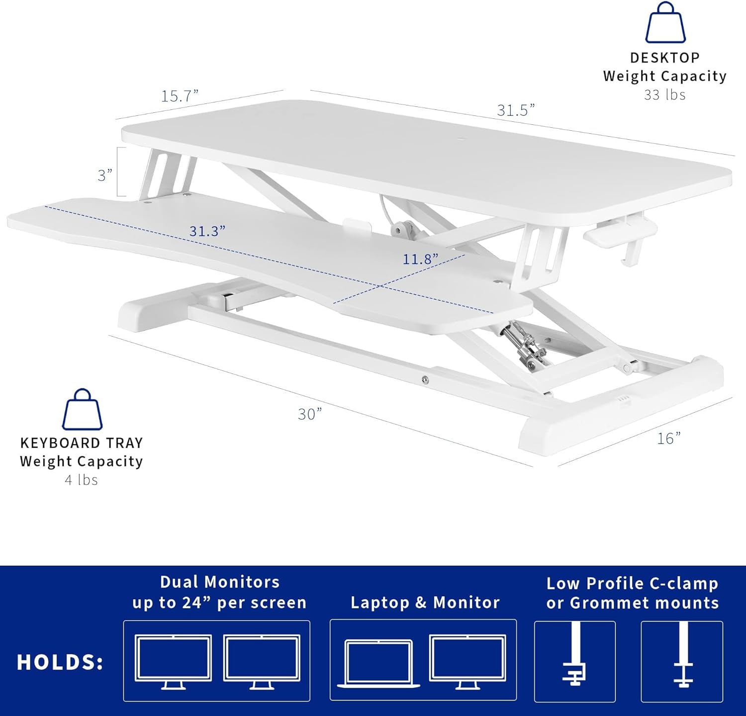 VIVO 32 inch Desk Converter, K Series, Height Adjustable Sit to Stand Riser, Dual Monitor and Laptop Workstation with Wide Keyboard Tray, White, DESK-V000KW