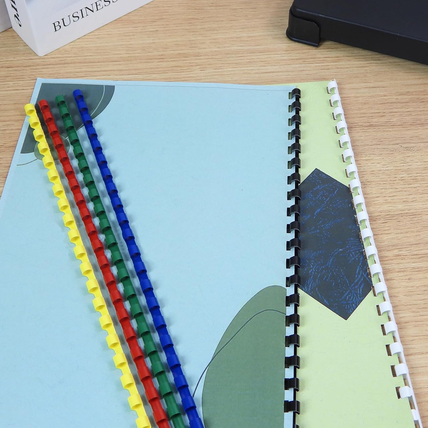 Rayson CR-6-100-M Plastic Binding Combs 1/4in. 21-Ring, 20-Sheet Capacity, Colorful Comb Binding Spines, Max. Binding A4 Size Paper (8.3"×11.7"), Box of 100