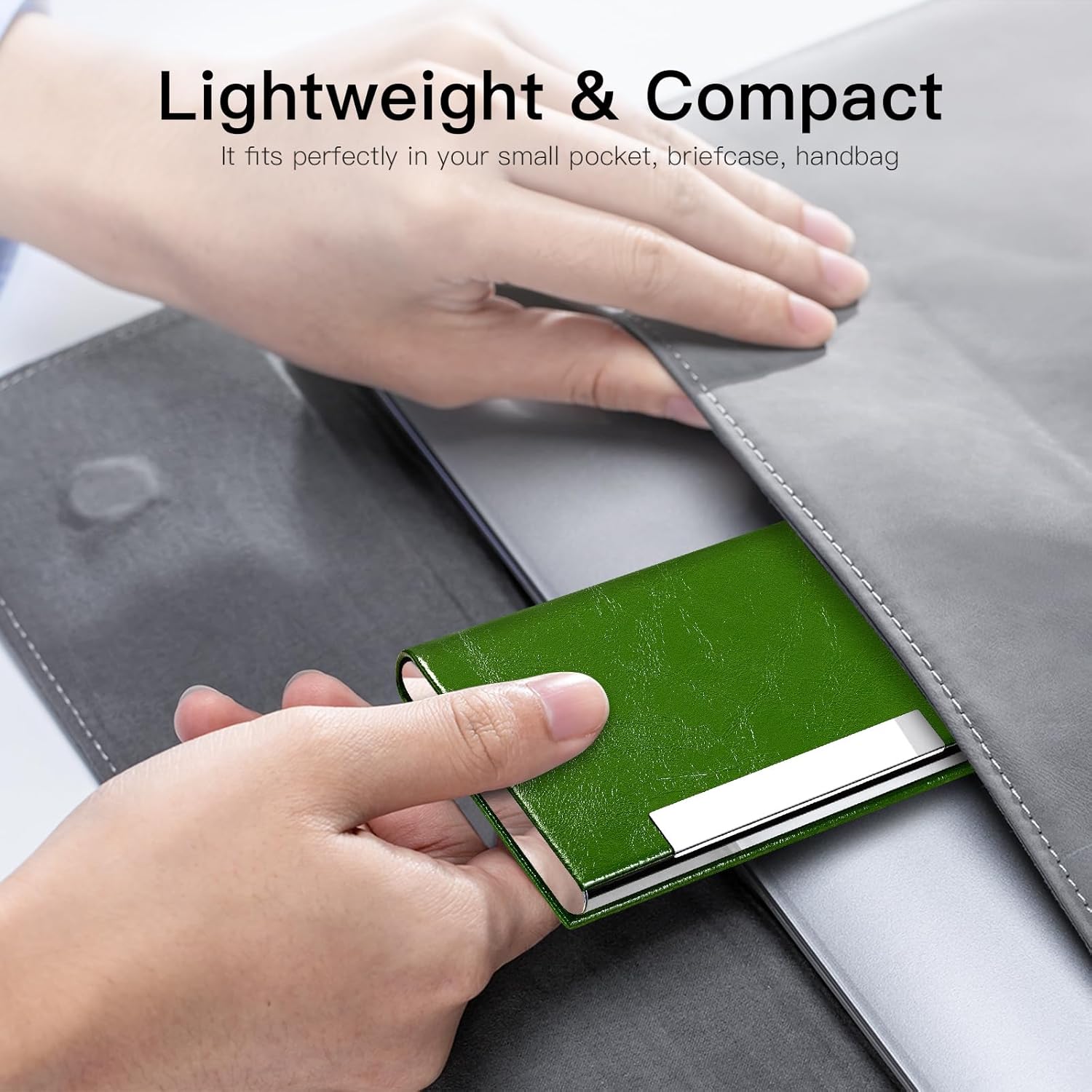 Padike Business Card Holder, Business Card Case Professional PU Leather & Stainless Steel Multi Card Case,Business Card Holder Wallet Credit Card ID Case/Holder for Men & Women. (V-Green)