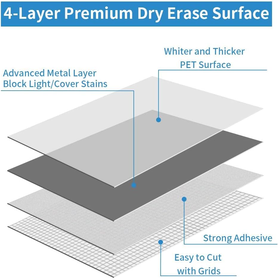 - NO RESIDUE AFTER 2 MONTHS – The dry erase surface is easy to remove and the markings are easy to clean without any residue even after 2 months due to the premium PET material.