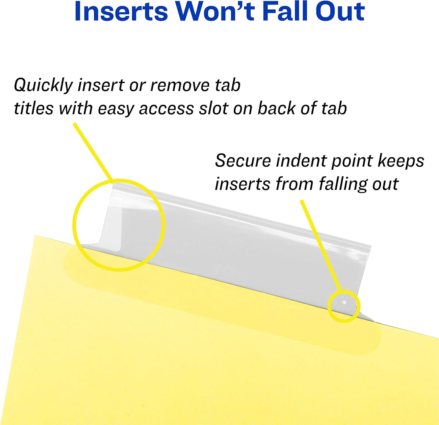 - Tab inserts won't fall out; special tab design keeps inserts secure and easy to access