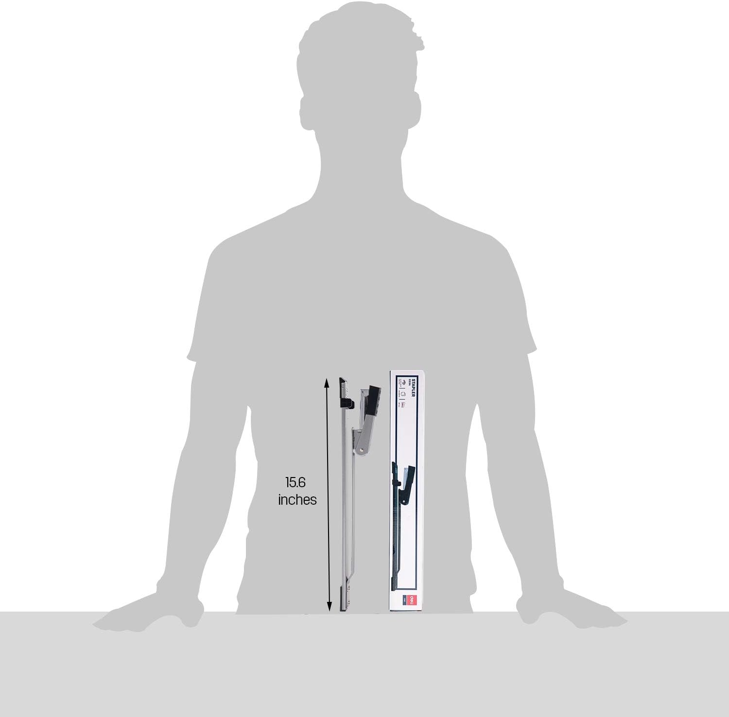 Deli Long Reach Stapler with 1000 Staples, 20 Sheet Capacity, Long Arm Standard Staplers for Booklet or Book Binding, Silver