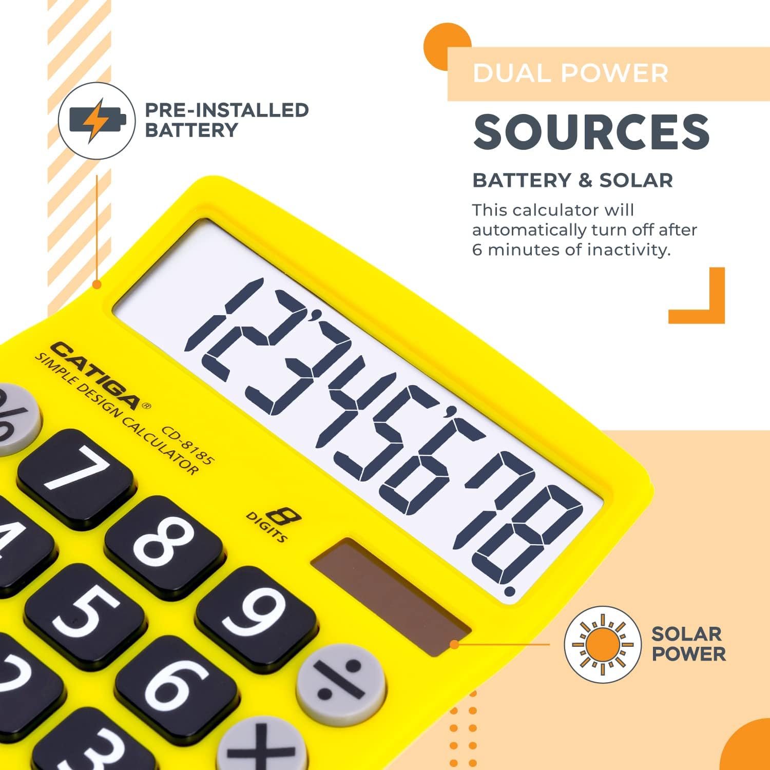 CATIGA Desktop Calculator 8 Digit with Solar Power and LCD Display, Big Buttons, for Home, Office, School, Class and Business, 4 Function Small Basic Calculators for Desk, CD-8185
