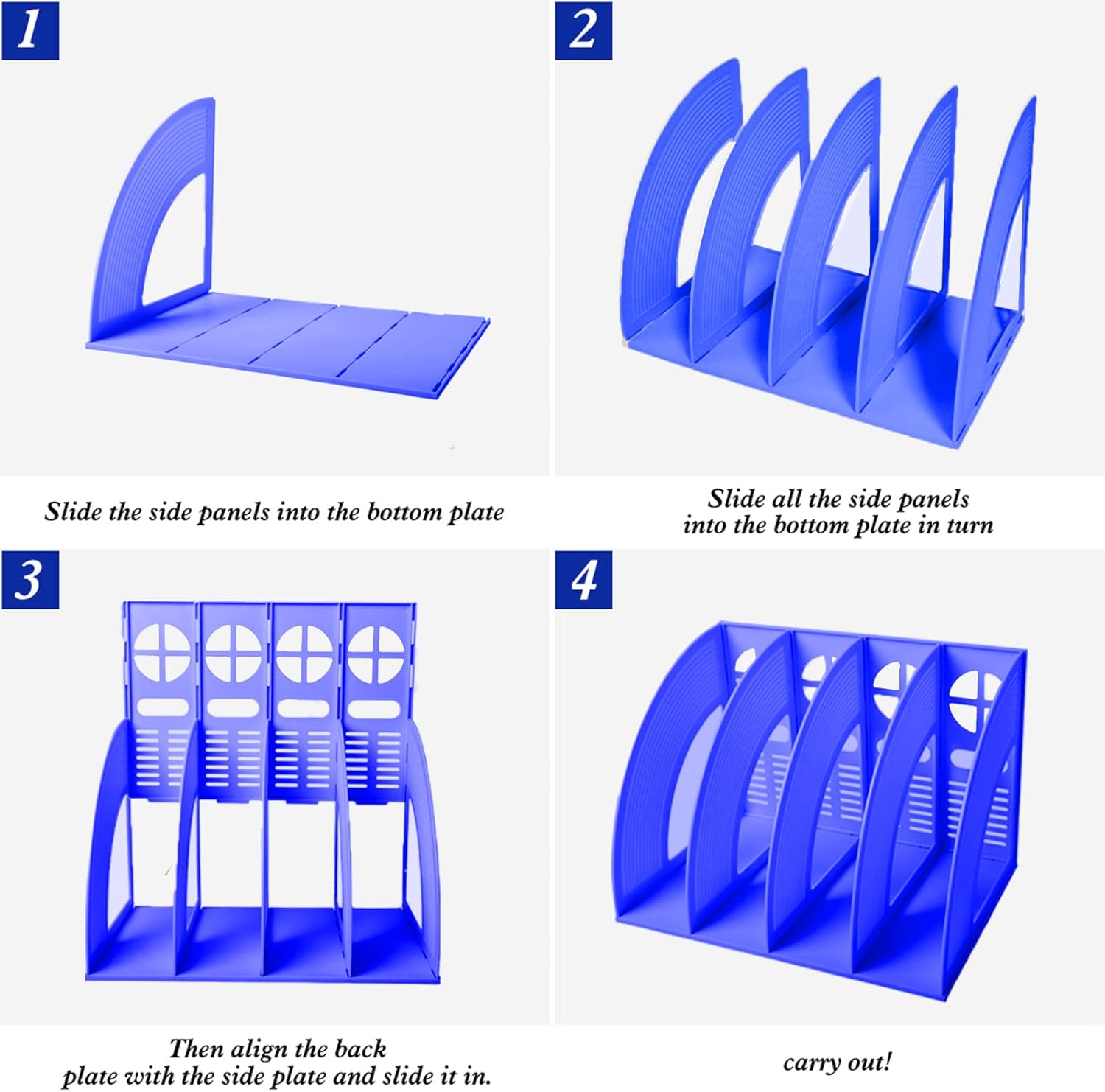 SAYEEC File Holder Storage Folder 4 Compartment Standing Desktop Hollow Organizer Blue Files Shelf Frame Thicken Plastic Paper Notebook Magazine Bookstore for Office School Supplier Students