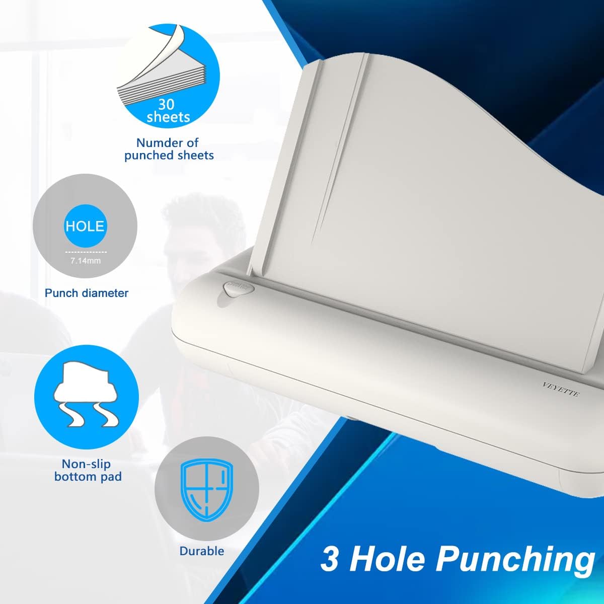 Electric 3 Hole Paper Punch, VEYETTE Heavy Duty Commercial Hole Puncher with Adapter for Office School Studio, 30 Sheet Capacity,Color Gray