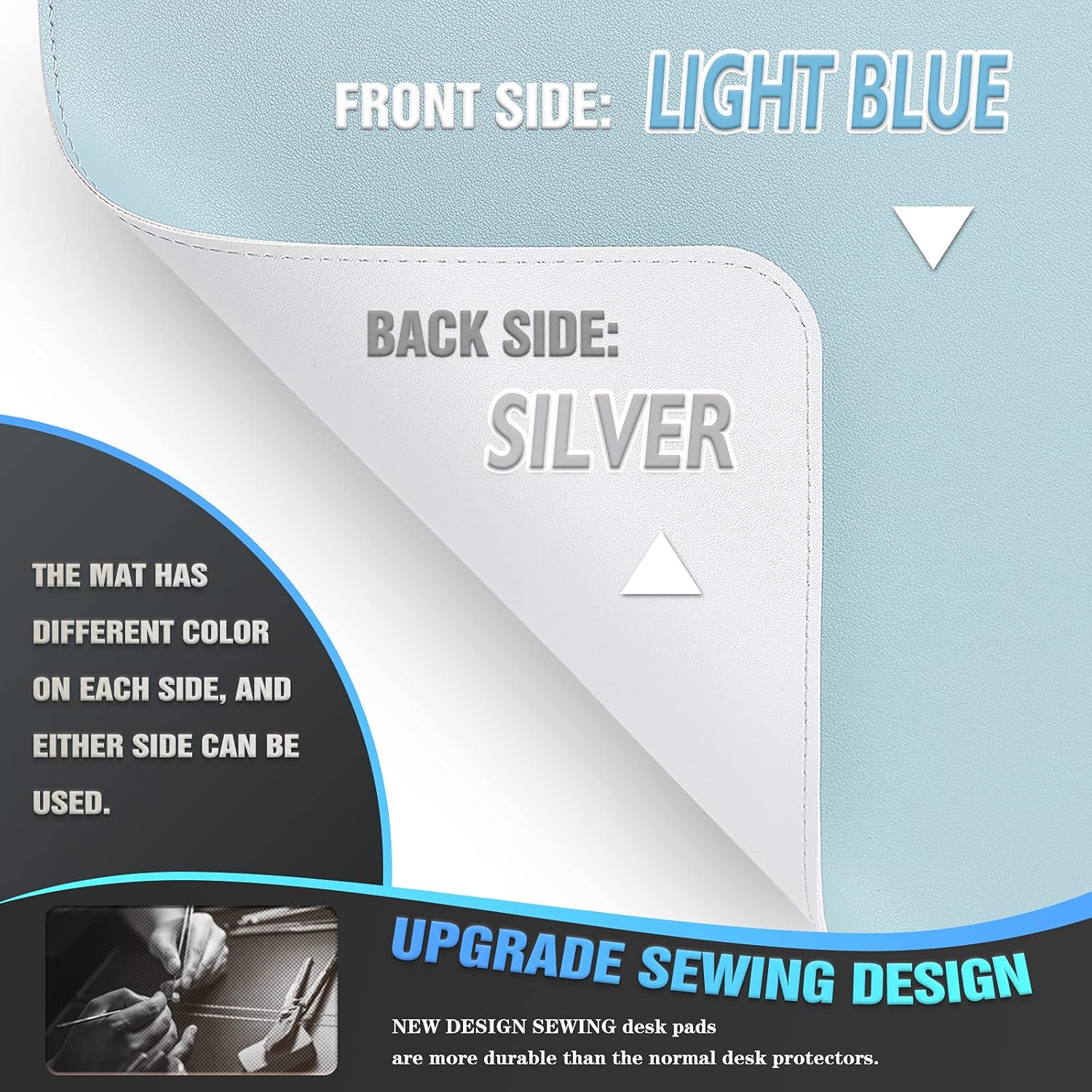 K KNODEL Desk Mat, Blotter, Dual-Sided Office Desk Pad, Waterproof Desk Mat for Desktop, Desk Blotters, PVC Leather Pad Protector (Light Blue, 31.5" x 15.7")