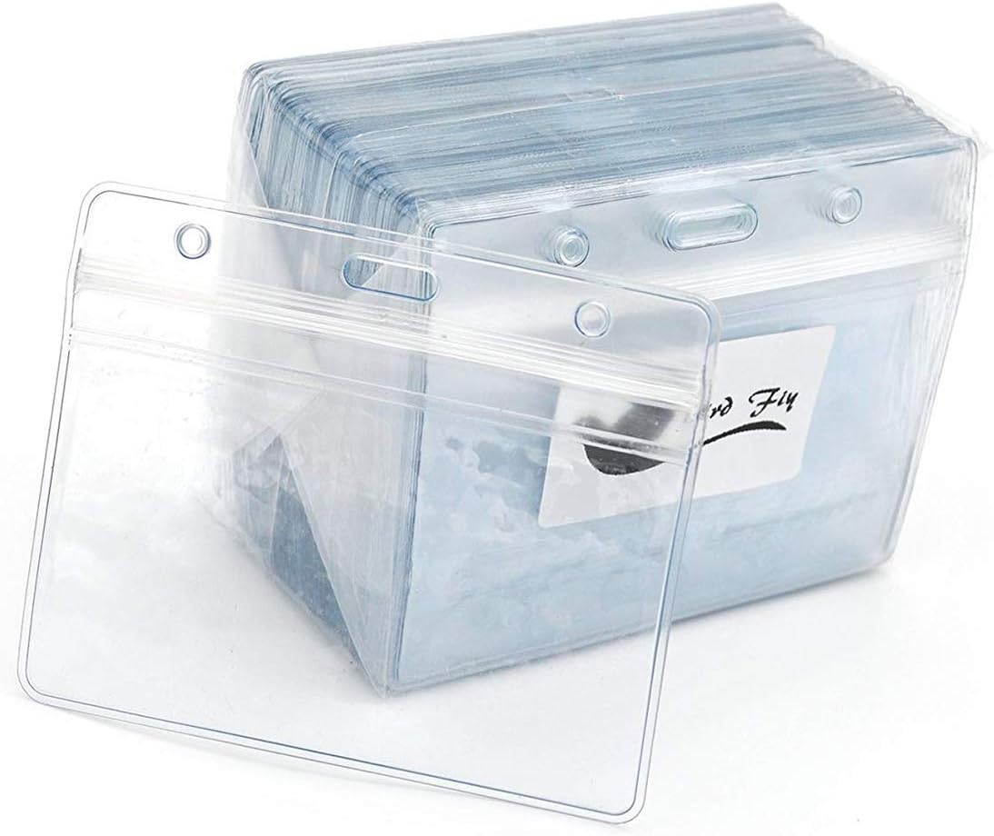 Lanyards with Id Holder Name Badges Waterproof Name tag Badge Holders with Neck Lanyard Swivel J-Hook Clip 50 Pack (Black, Horizontal)