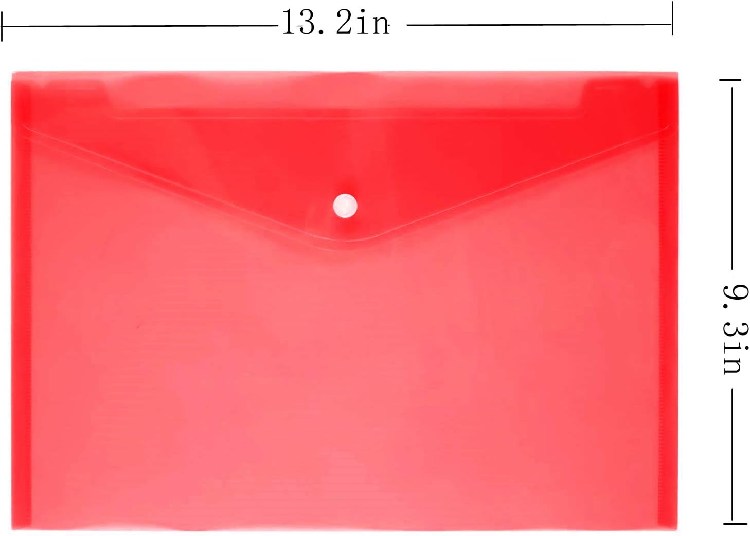 Poly Envelope 12 Pcs Document Envelopes with Snap Button Quality Clear Document Folder for A4 Size (red)