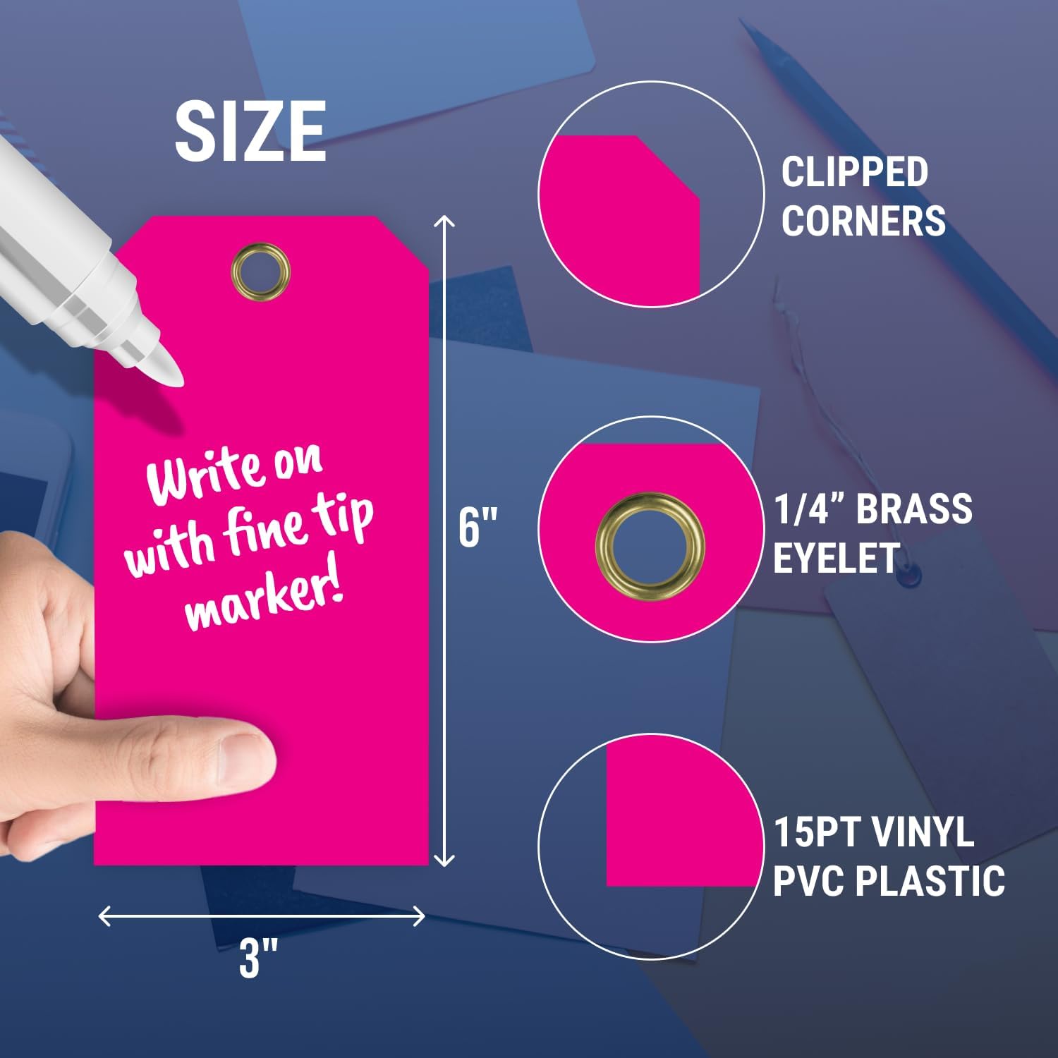 - Material : 15pt Vinyl PVC Plastic Tag