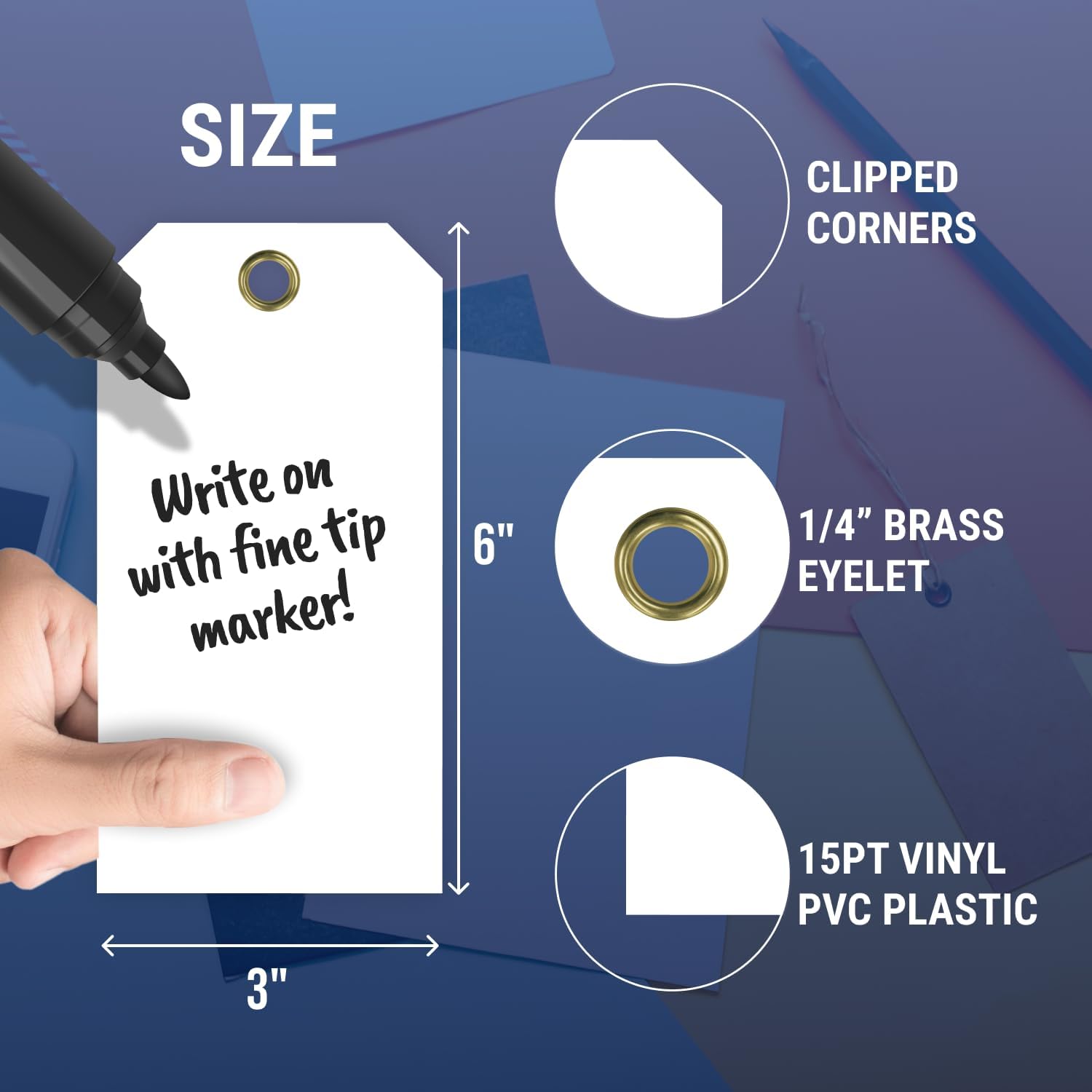 - Material : 15pt Vinyl PVC Plastic Tag