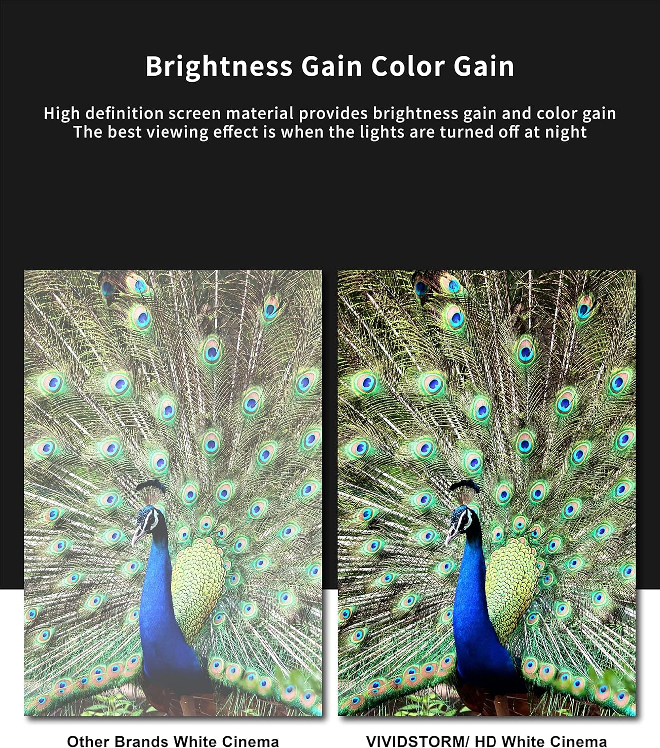- ▶【The perfect visual effect 】The Screen size:120-inch Diagonal:16:9 Aspect Ratio;Standard View Area :104.57”Wx58.82"H;G.W.(Ibs):74.96;Screen Material:WHITW CINEMA PVC; 1.1 Gain for a Vivid Viewing Experience from 160 Degrees ;Projector Throw Type: ONLY compatible for Normal THROW PROJECTOR; Support 8K/4K Resolution Ultra HD & Active 3D Ready; Offer 110V voltage;